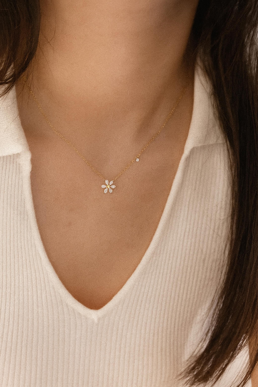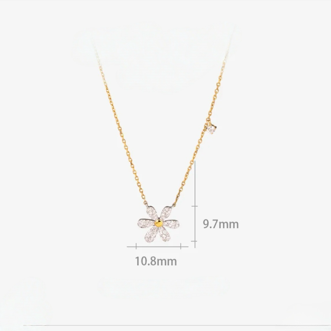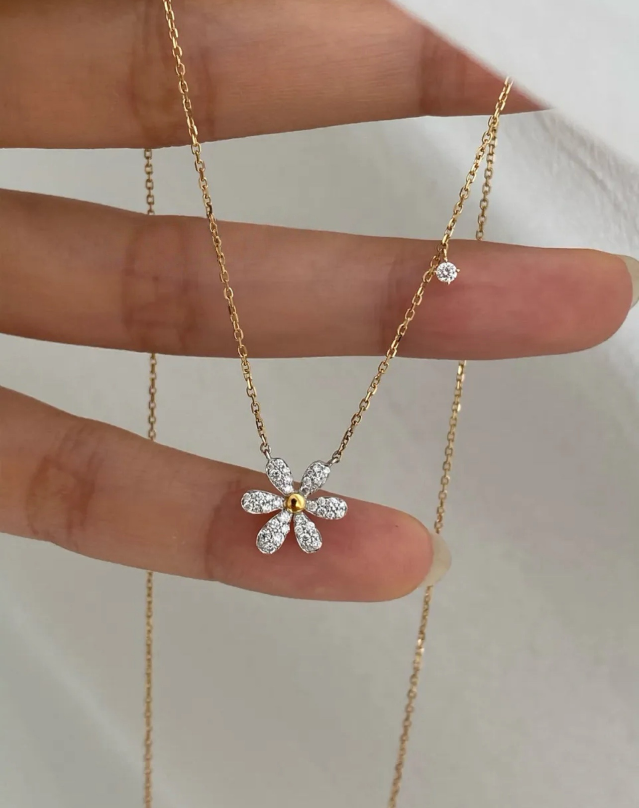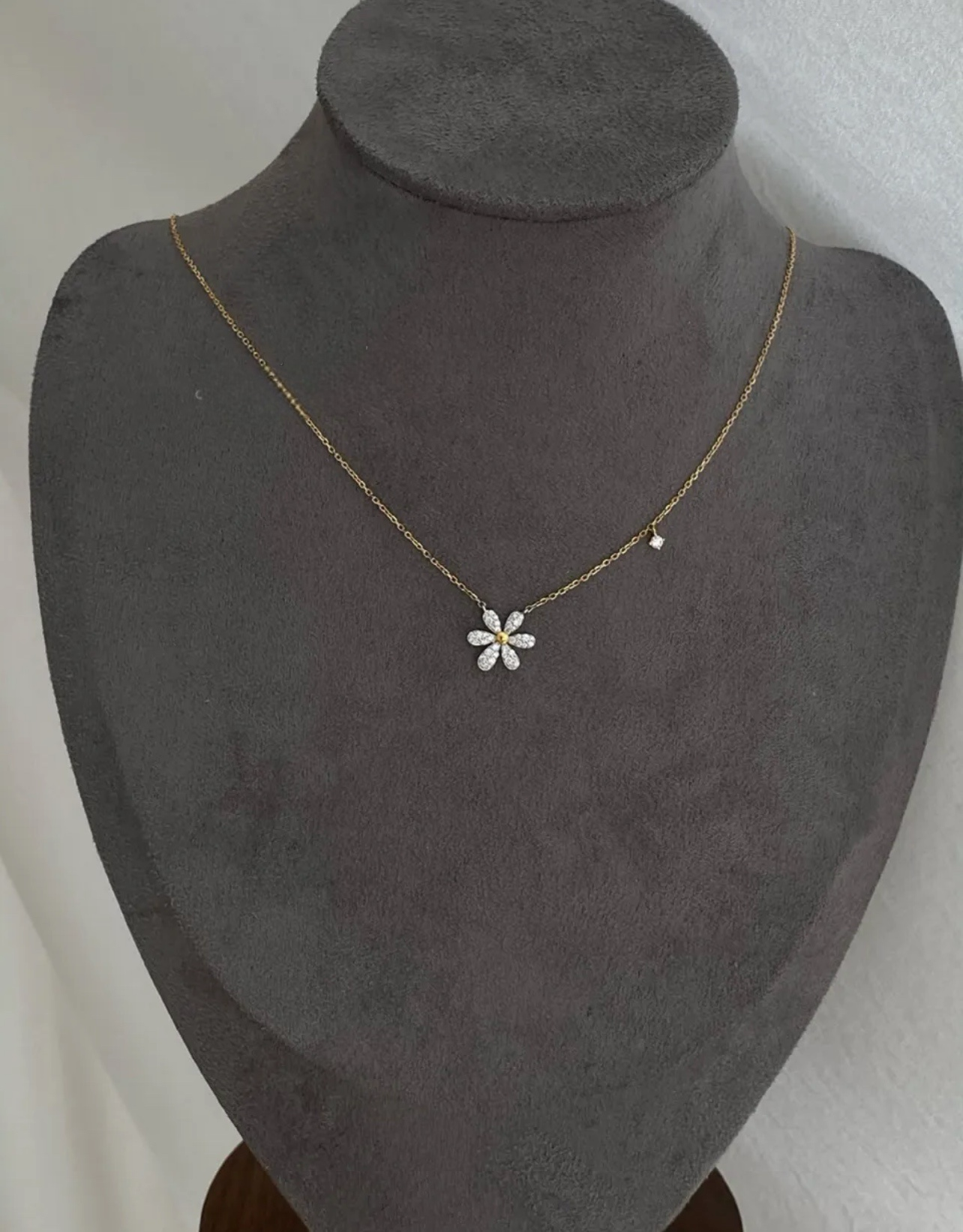 Bring timeless elegance and a touch of nature’s beauty to your everyday style with this delicate daisy pendant necklace. Crafted in solid 18K gold, the daisy flower sparkles with natural diamonds (~0.25ct total) carefully pavé-set on each petal, finished with a warm golden center.