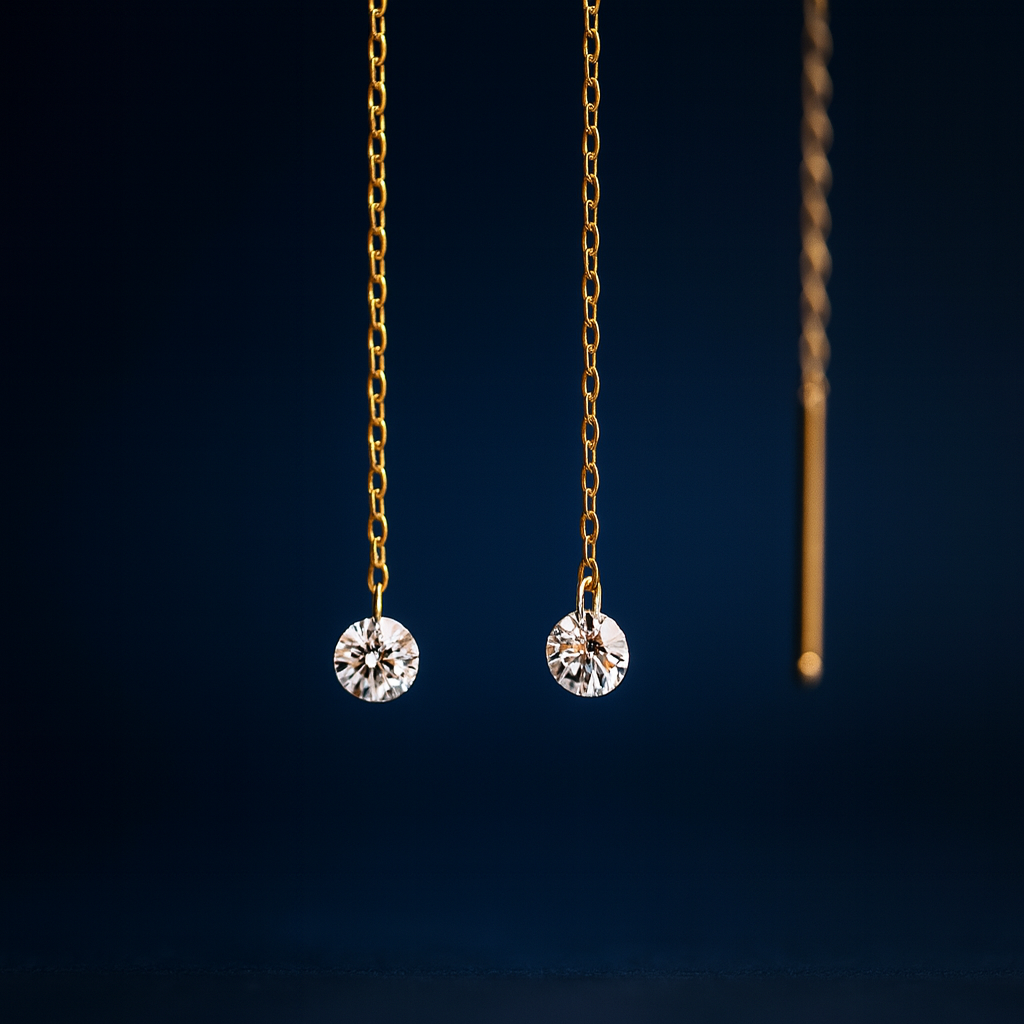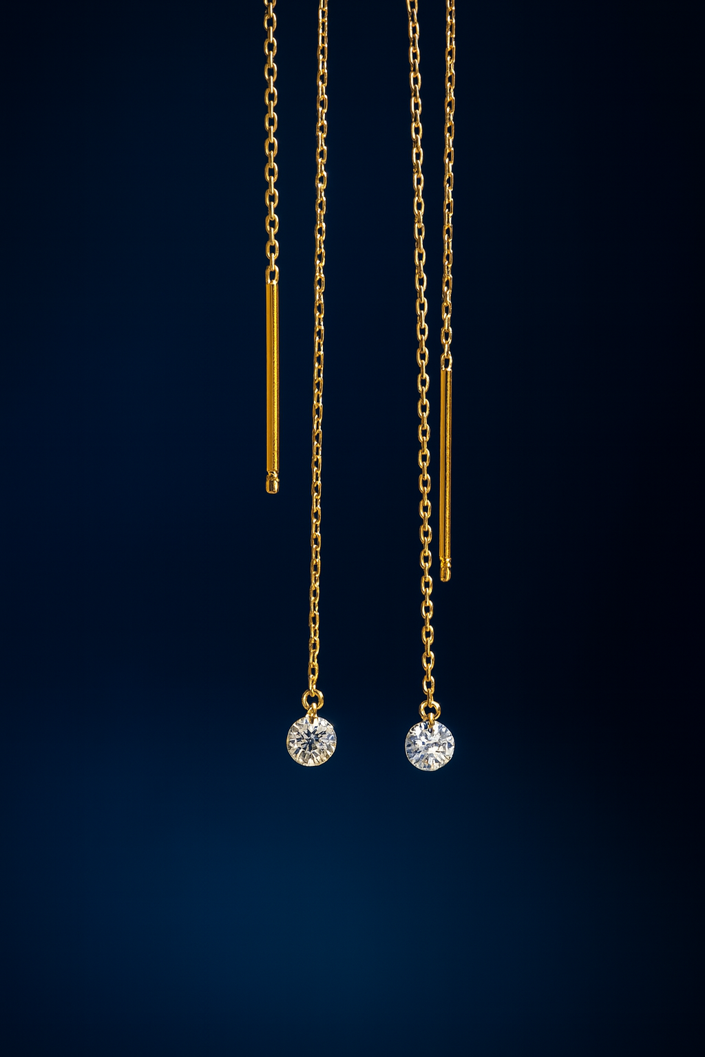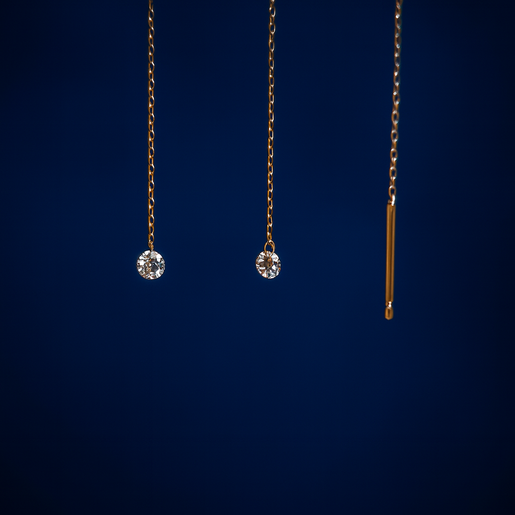 Graceful and refined, these minimalist threader earrings are crafted in solid 14K or 18K rose gold. Each piece features a sparkling 0.10 carat pear-shaped diamond, delicately suspended to catch the light with every movement.